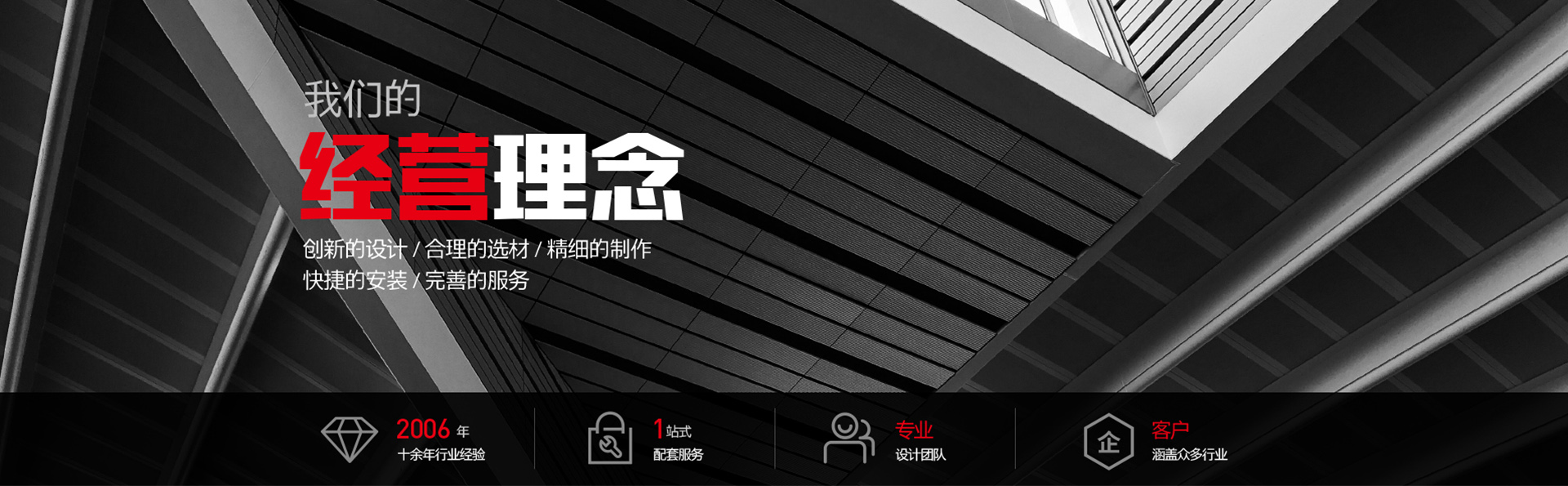 誠信是我們賴以生存的根本。創(chuàng)新的設(shè)計,合理的選材,精細(xì)的制作,快捷的安裝,完善的服務(wù)是我們也就不變的經(jīng)營理念。我們竭誠為您提供中******,個性化,創(chuàng)意性的作品,我們不斷進(jìn)取,努力今天的同時也在發(fā)展未來,期待與您結(jié)成事業(yè)上的好伙伴,共圖發(fā)展!